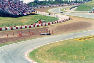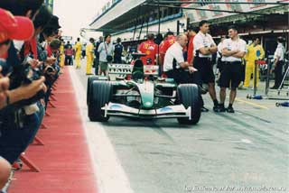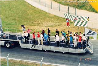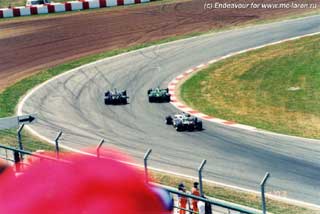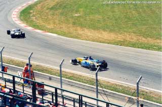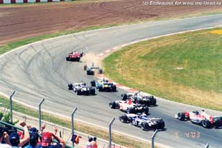 Поездка на автодром началась в 9 утра, однако добраться я смог только к 11 часам, незадолго до парада пилотов. Посмотрев гонки Сеат, долгое время я просидел в ожидании беседуя с соседями по трибуне. Но наконец подошло время гонки - после прогревочного круга гонщики выстроились на старт и…к первому повороту Райконнен не доехал, а во втором Култхард столкнулся (не помню с кем, по моему с Трулли) и повредил машину. После визита на пит-лейн, Култхард поехал более или менее быстро и даже обогнал 3-4 машины, но тут на его пути непреодолимым препятствием стал Ягуар, за которым он находился вплоть до столкновения с Баттоном….После этого оставалось только наблюдать за борьбой Алонсо с Шумахером и борьбой в середине пелетона. На церемонию награждения я решил не оставаться по причине отсутствия пилотов маков на подиуме, и из за желания попасть на ж.д. станцию до основной массы возвращающихся болельщиков.