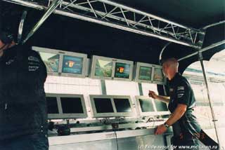 Оказалось, что желающих посетить пит-лейн очень много, и мне пришлось отстоять приличную очередь. Непосредственно подойти к боксам конечно же не позволяется, и вся зона посещения ограничивается расстоянием между "капитанскими мостиками" и ограничительными барьерами, которые стоят примерно за 15 метров до боксов. Тем не менее, все равно было интересно посмотреть вблизи на разобранные машины, "капитанские мостики", работающих механиков и т.д.…