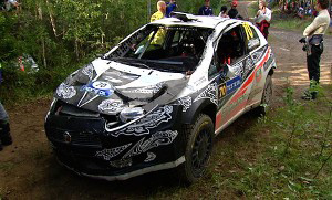 Однако с утра у Abarth Grande Punto S2000 Кими начались проблемы с двигателем. До дневного сервиса Райкконен добрался на трех цилиндрах, с поврежденным задним амортизатором и поврежденной защитой картера. Однако механики сумели восстановить машину, и финн отправился на вторую часть спецучастков второго дня.